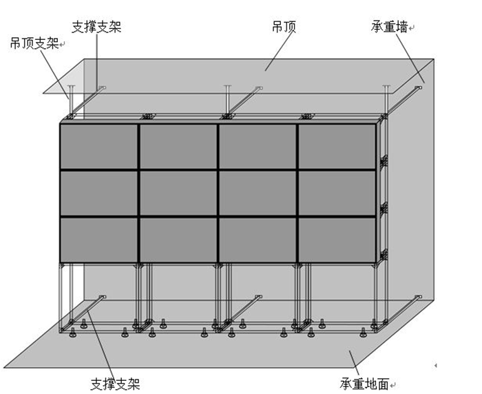 安裝基座一般直接與抗靜電地板接觸,以保證地面長期承重受力不變形。安裝在墻壁上則要注意墻壁的承載能力和墻體的結(jié)實程度,而且墻壁和屏幕之間要留有大于10-20CM的散熱空間以保證熱量排出。地面要求平整結(jié)實,承重力強,不變形。